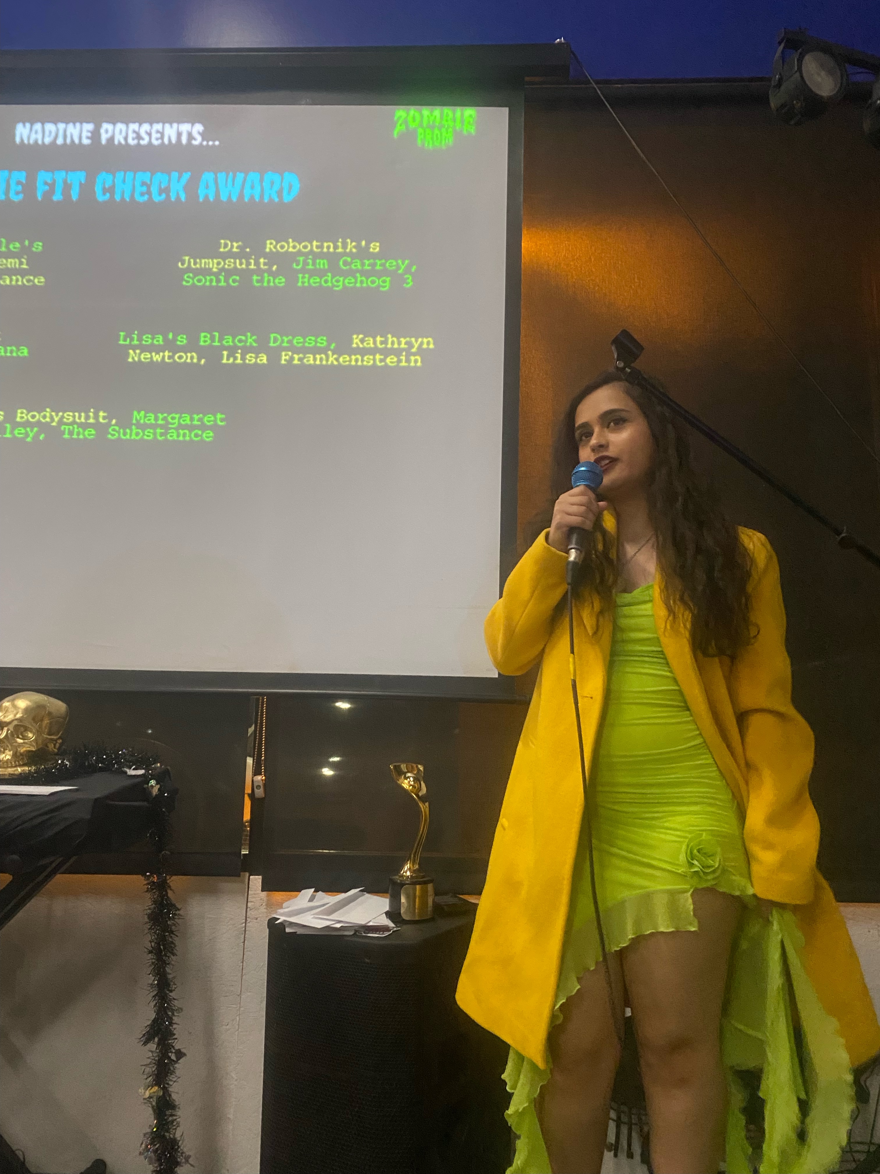 | Barbie Fit Check Award | – Elisabeth Sparkle’s Yellow Coat, Demi Moore, The Substance – Dr. Robotnik’s Jumpsuit, Jim Carrey, Sonic the Hedgehog 3 – Galinda’s Ozdust Ballroom Gown, Ariana Grande, Wicked – Lisa’s Black Dress, Kathryn Newton, Lisa Frankenstein – Sue’s Bodysuit, Margaret Qualley, The Substance | Elisabeth Sparkle’s Yellow Coat, Demi Moore, The Substance |